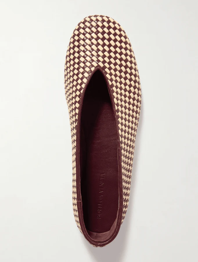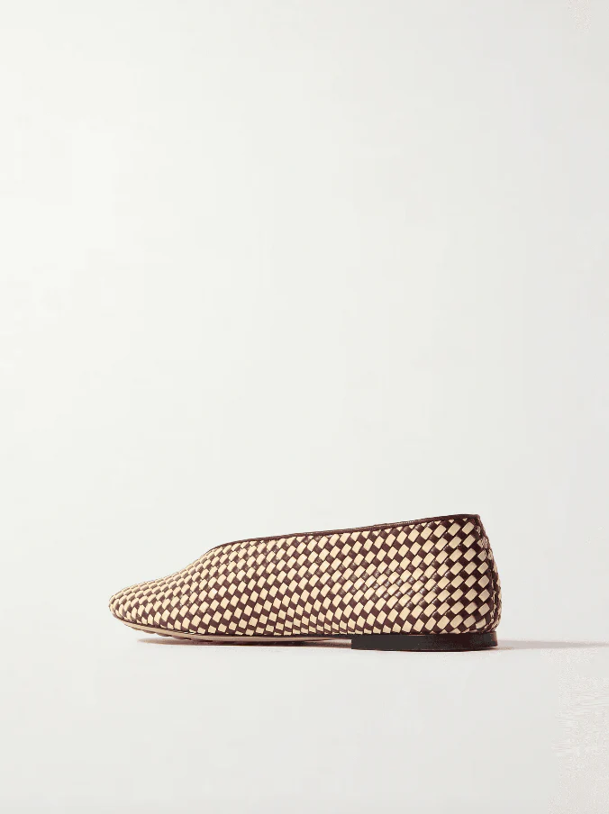 Ballerine à construction souple en cuir d’agneau tressé avec passepoil lisse.