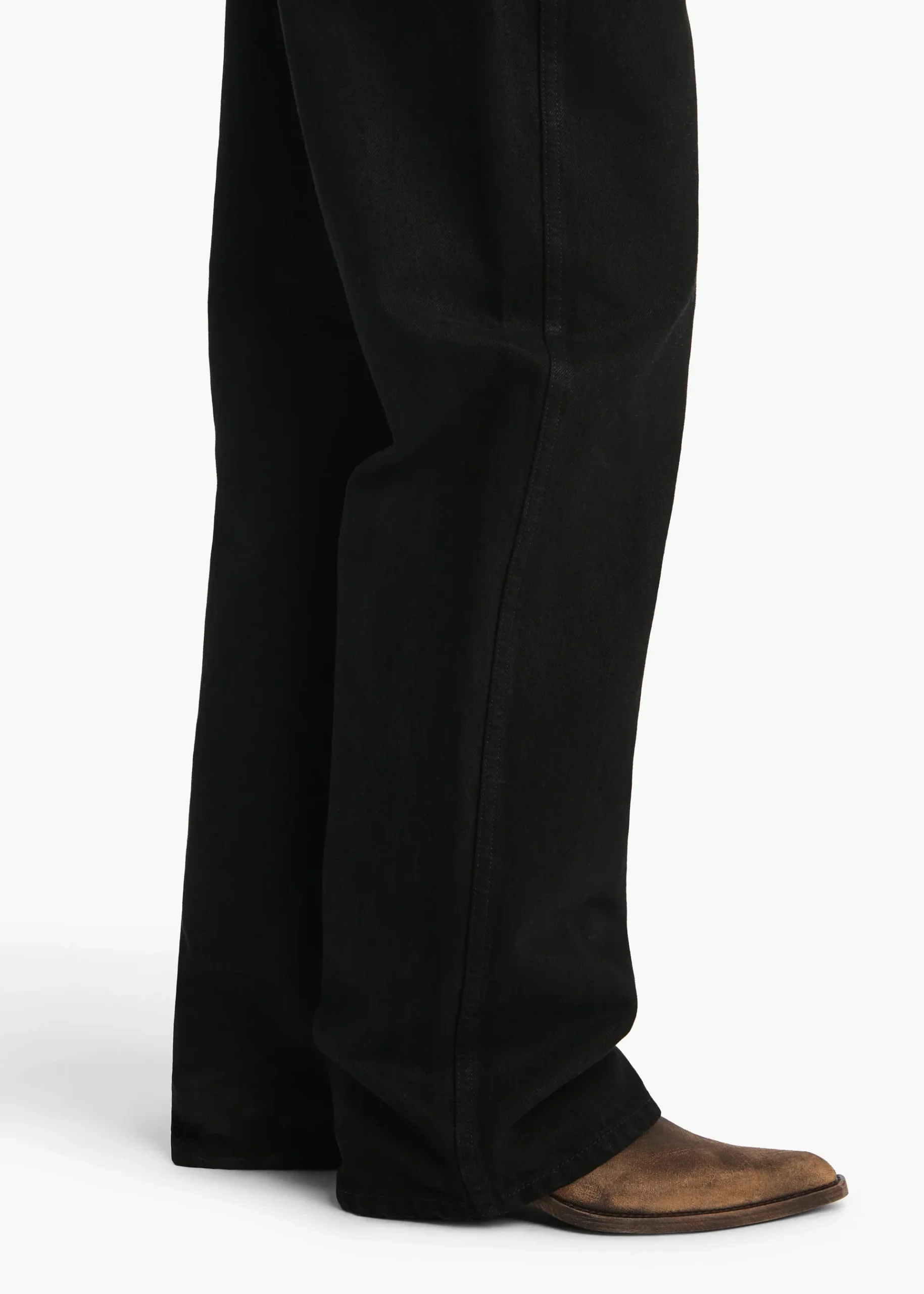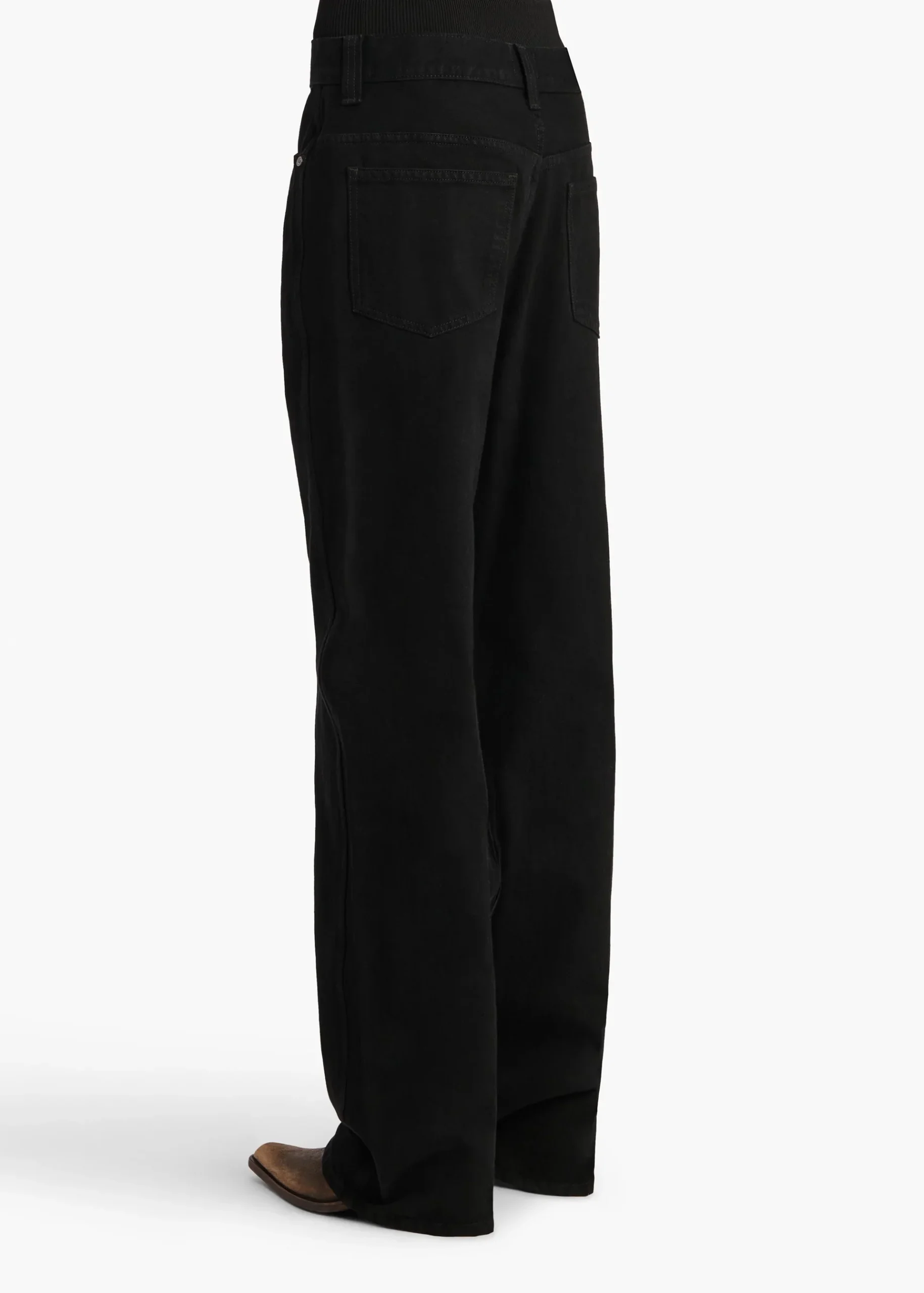 Conçue pour s’asseoir au niveau des hanches, cette silhouette décontractée associe les détails classiques du denim à cinq poches à une taille basse. Finition à la main.