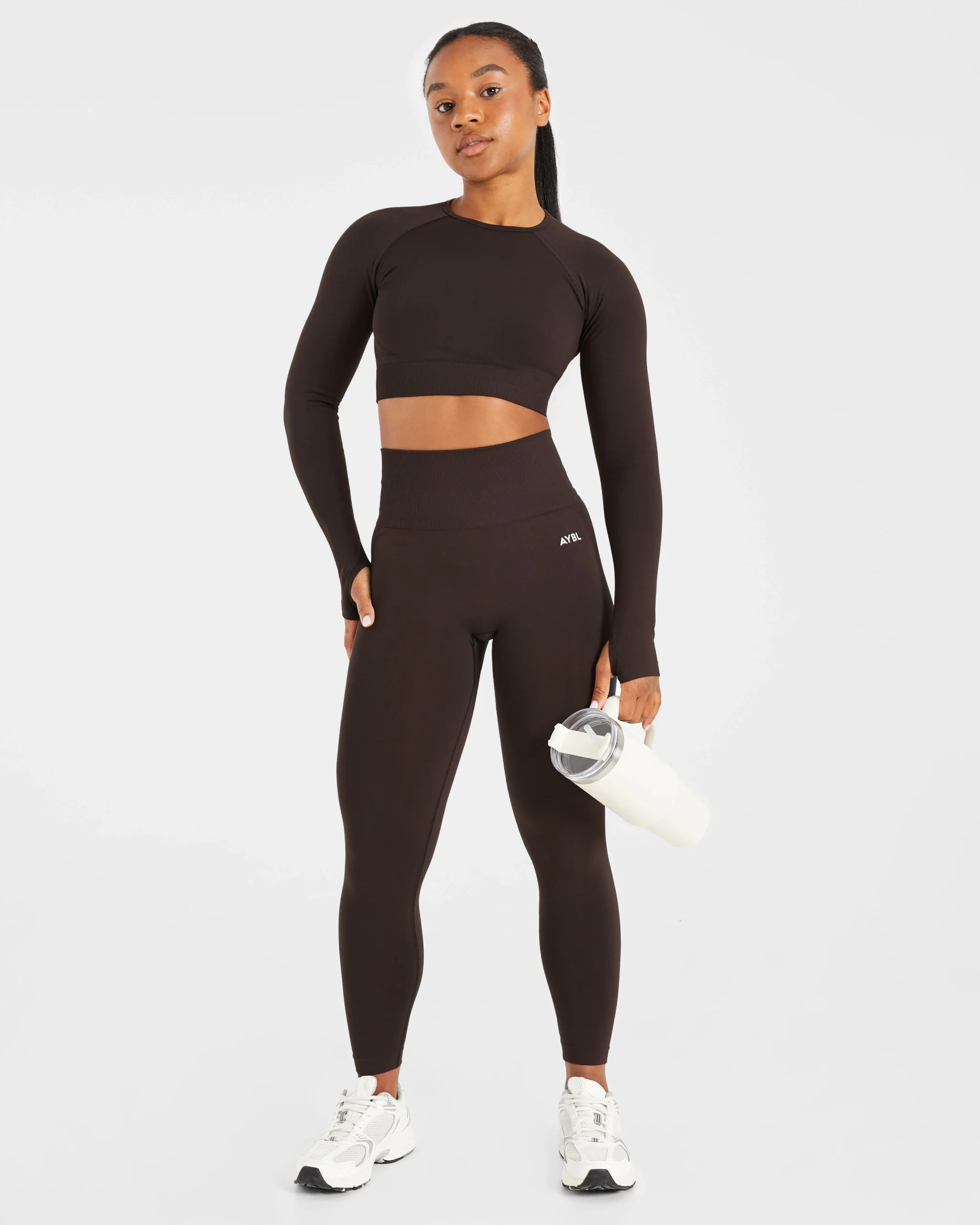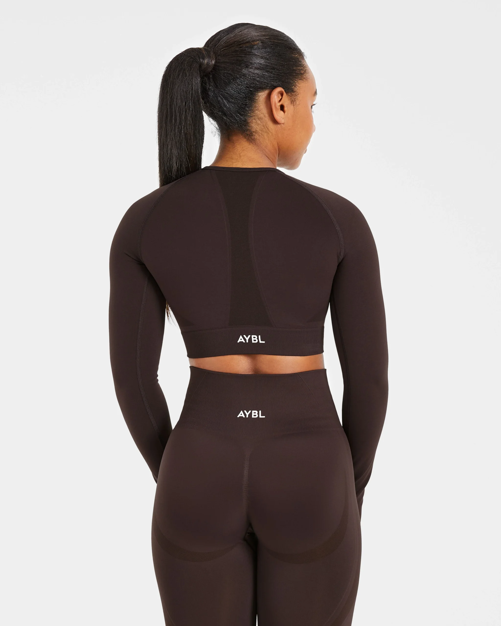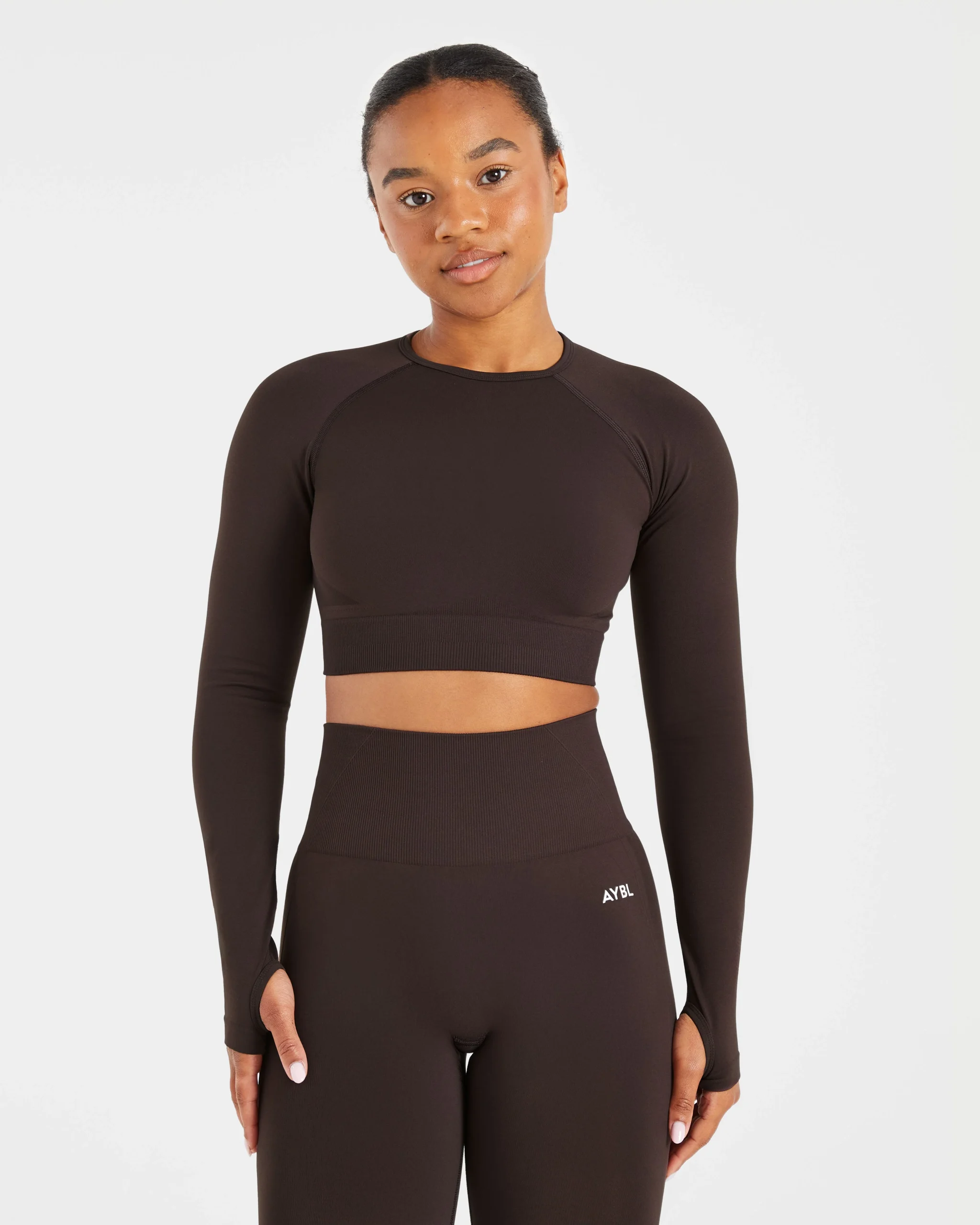 Empower Seamless Long Sleeve Crop Top – Cocoa Brown
